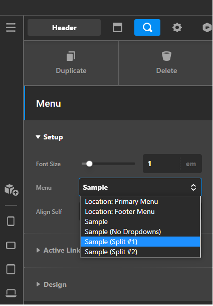 I am unable to see the menus listed in the header builder (Sample, etc) when viewing menus in WordPress Appearance|Menus. See attached images. What am I missing? Thanks!