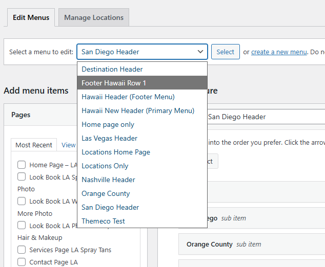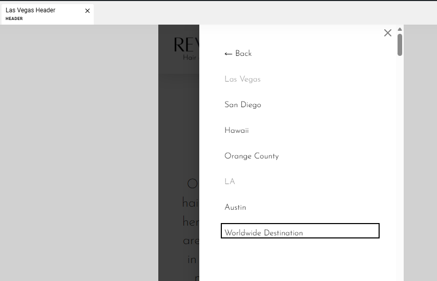 As for the mobile menu, you will have to edit your “Hawaii New Header” menu and add the LA and Austin menu items which I already did by the way to save us time going back and forth.