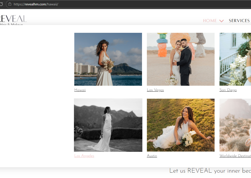 When I visited https://revealhm.com/hawaii/, the LA and Austin menu items were already present. This is on desktop screens: