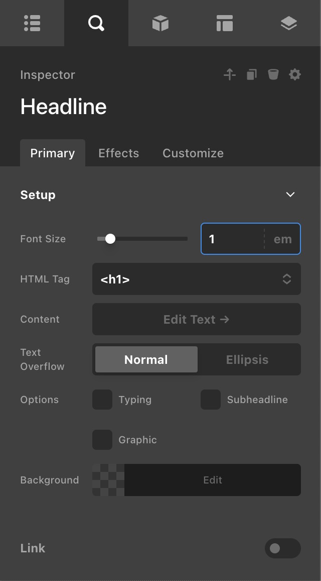 The font size at the Setup option is the base font size for the Headline element. Be advised that you can have a headline text, subheadline, and a graphic when using the Headline element. It is best that you leave the base font size at 1em and then adjust the font size of your headline text in the Text option right below the font family and other font settings.
