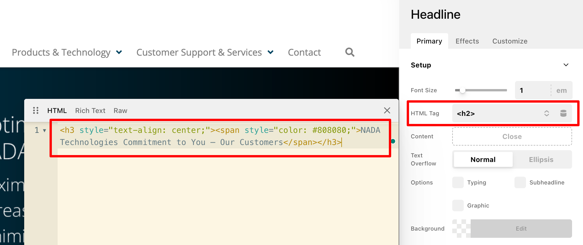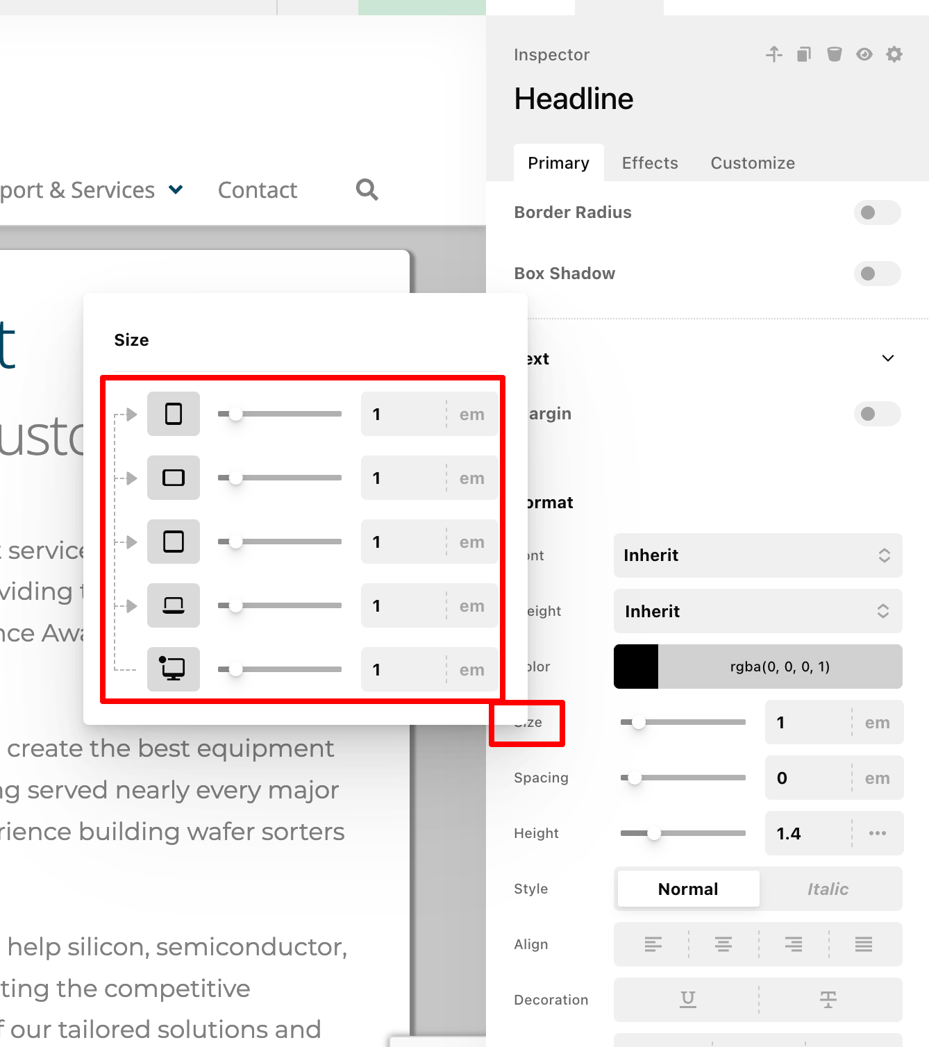I am working on a new site and everything has been working great. However, I recently changed up some headlines and while it looks correct in Cornerstone, the display is adding space above both my headlines and my sub-head. I have totally rebuilt the section multiple times, removing the Classic Headline and replacing it with the current version of the Headline, but it keeps adding the space. It’s only happening on this one page. I have compared the setup to other pages that are displaying correctly and everything matches. While inspecting the page in Chrome tools, I see the extra space above both the headline and sub-head, but it’s not showing me where it’s coming from. I was hoping you might be able to take a look and help me figure out where the extra spacing is coming into play.