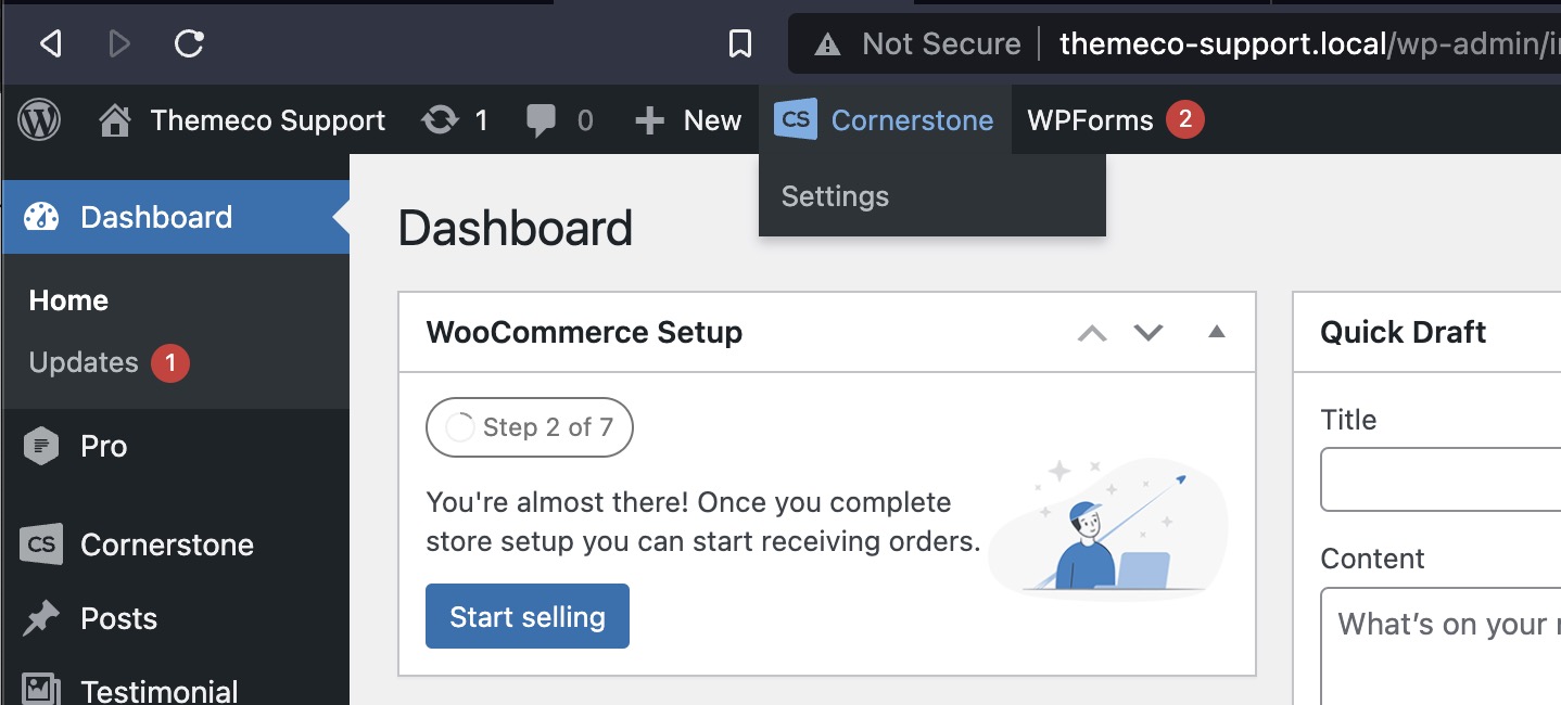 Click the “Cornerstone” in your WP admin bar to launch the Cornerstone builder.