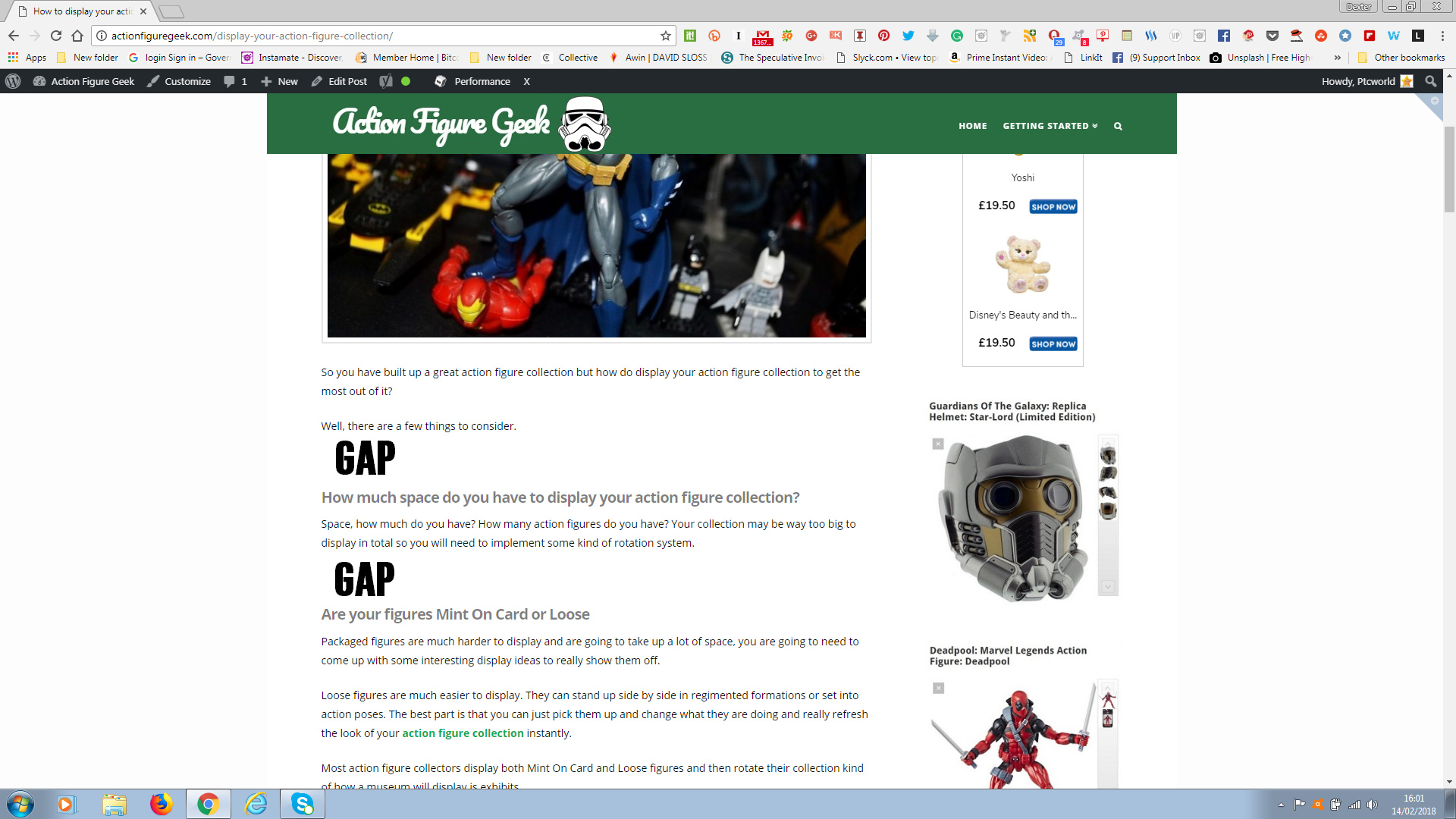 1/ I seem to have quite a gap between htags and text take a look at this image I have uploaded or just visit the article here http://actionfiguregeek.com/display-your-action-figure-collection/