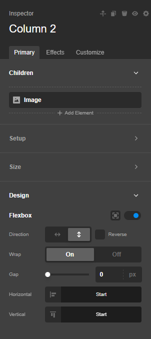 If that does not work, in your Column element, you can enable the Flexbox setting and make sure that the Direction is “columns”.