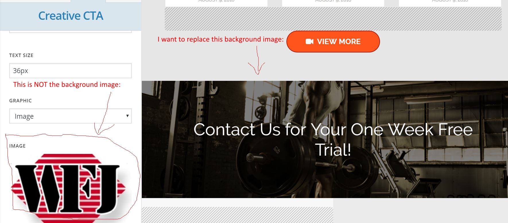 Hello, I installed your Gym extended demo but cannot find where to change the background image of the “Creative CTA” element. My site is jiujitsuroswell.com