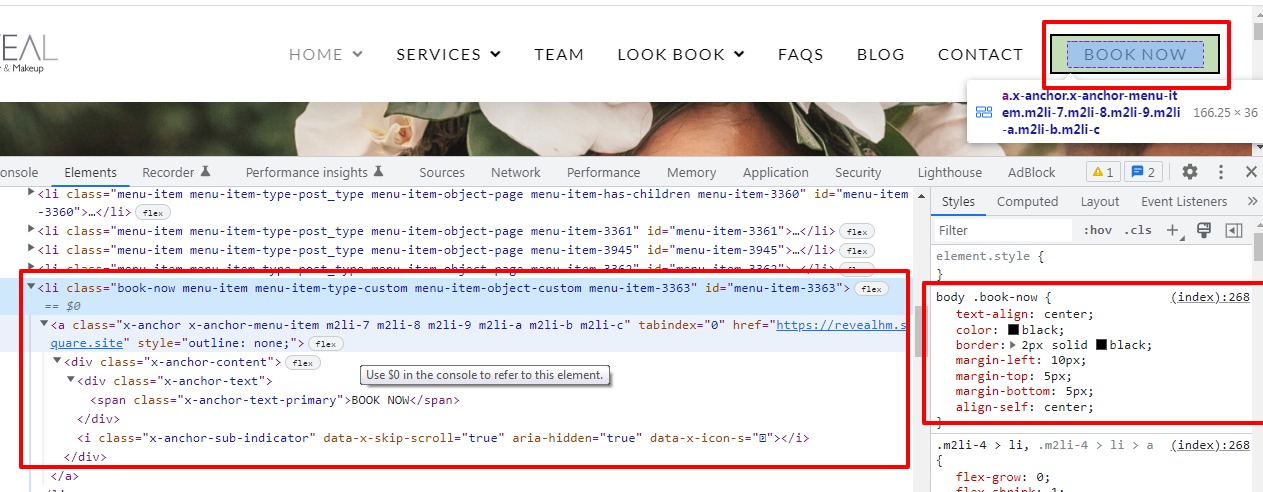 Hello! We would like to change the color of the “Book Now” button border on the header to #eeb6b7. Is that possible? We want the rest of the buttons to remain as is I think.