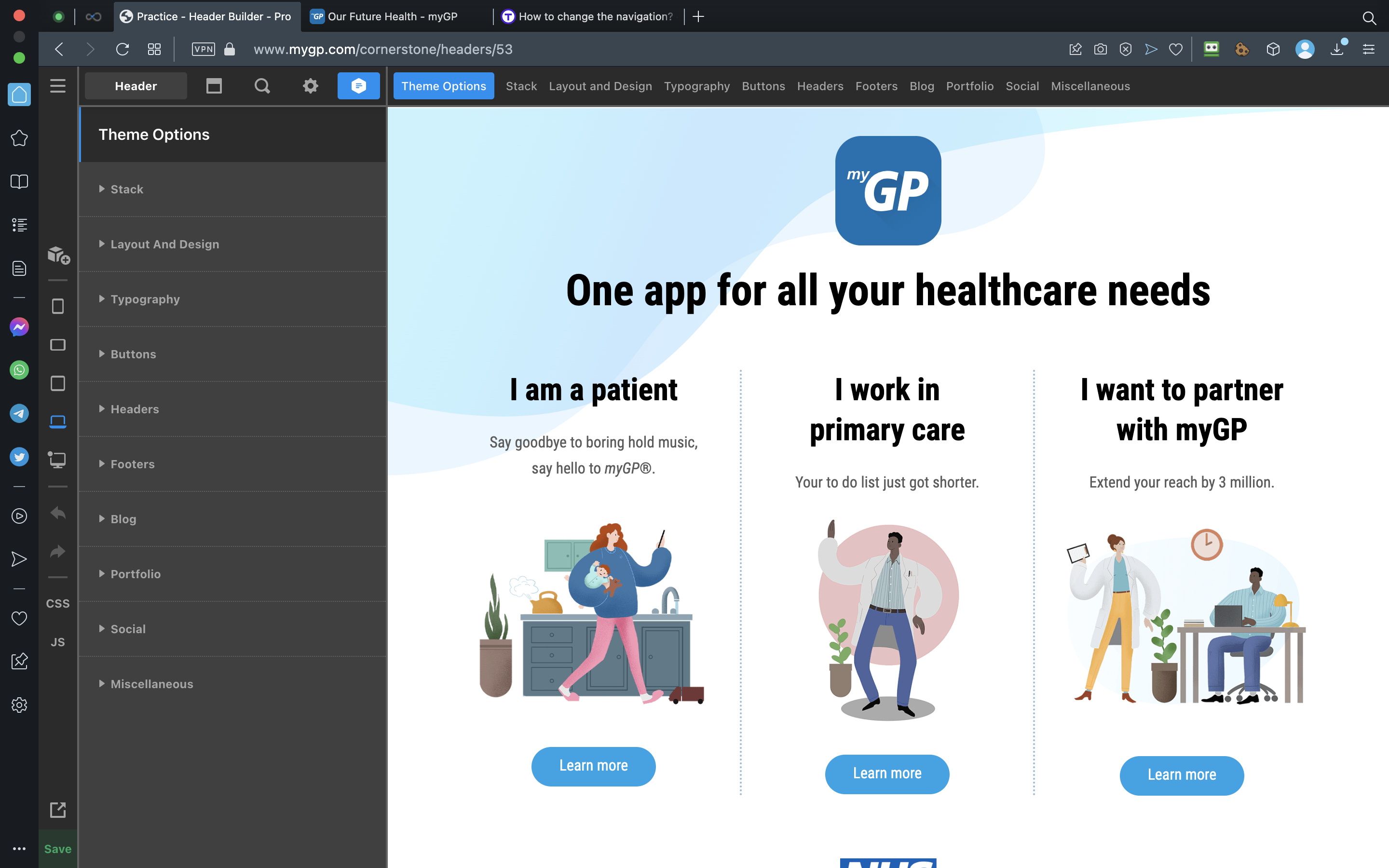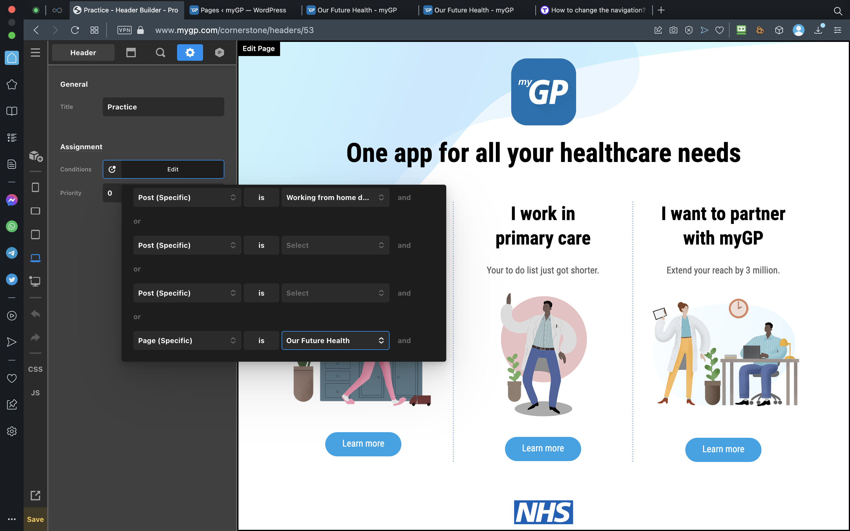 Our site has two different navigations for two sections of the site. One for product users (https://www.mygp.com/user/) and one for partners (https://www.mygp.com/im-nhs-staff/). Before updating the theme a while ago (before the settings were in Cornerstone but in Pro settings) the navigation could be changed in Header builder. This no longer seems to be the case. How / where can navigations be assigned / changed now?