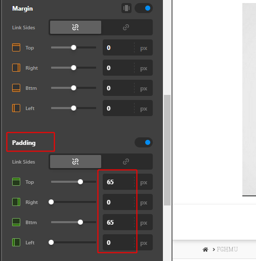 Also, make sure that the Margins of the Row and Column elements inside your Section are set to 0.