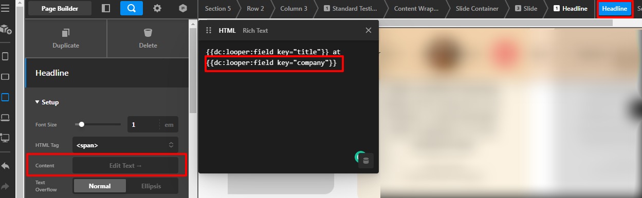 I would like to edit the bottom line where it says “name” at “Company”. I want it to only mention the name. I managed to delete the company name in the code, but I can’t see where the text “at” is coming from. I would like to delete “at”. Can you let me know how to do this?