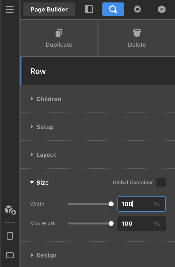 Thanks for writing in! To get your issue resolved, in your Section > Row > Size, disable the Global Container and then set the Width and Maximum Width to 100%.
