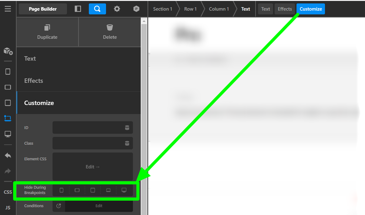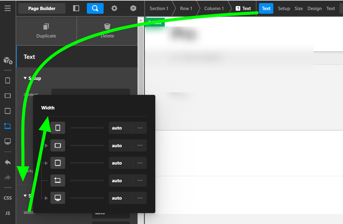 So the Text element width will be adjusted as per the given values for the specific screen sizes. And you can use the Hide During the Breakpoint option to hide the Text element in a specific screen size too.