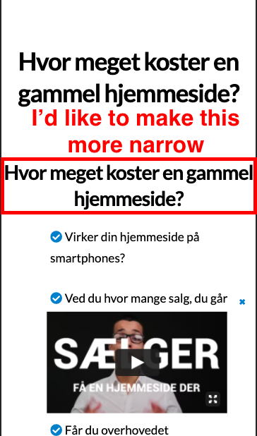 But I would suggest you use the Text element instead of the Classic Text element and control the width by clicking into the Width option to get an option to specify all screen size widths as shown in the given screenshot.