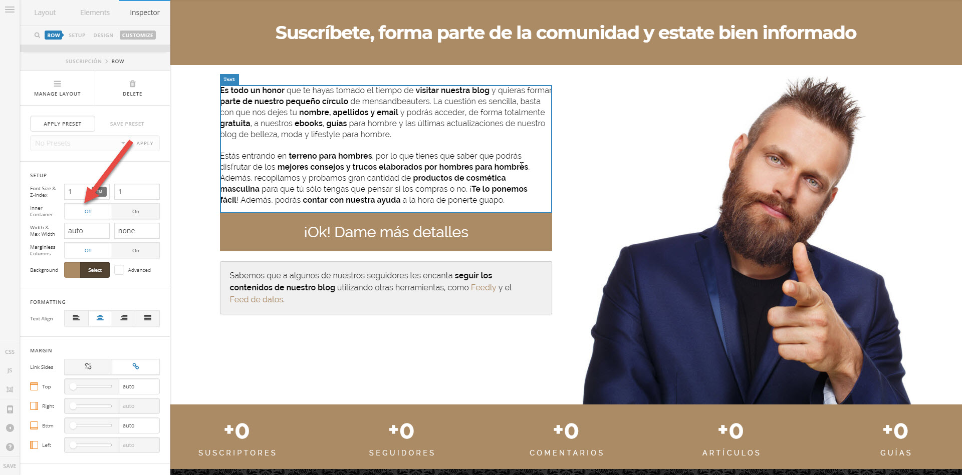 Also, turn off the ROW’s Inner Container option on the Row where you placed your Global Block.