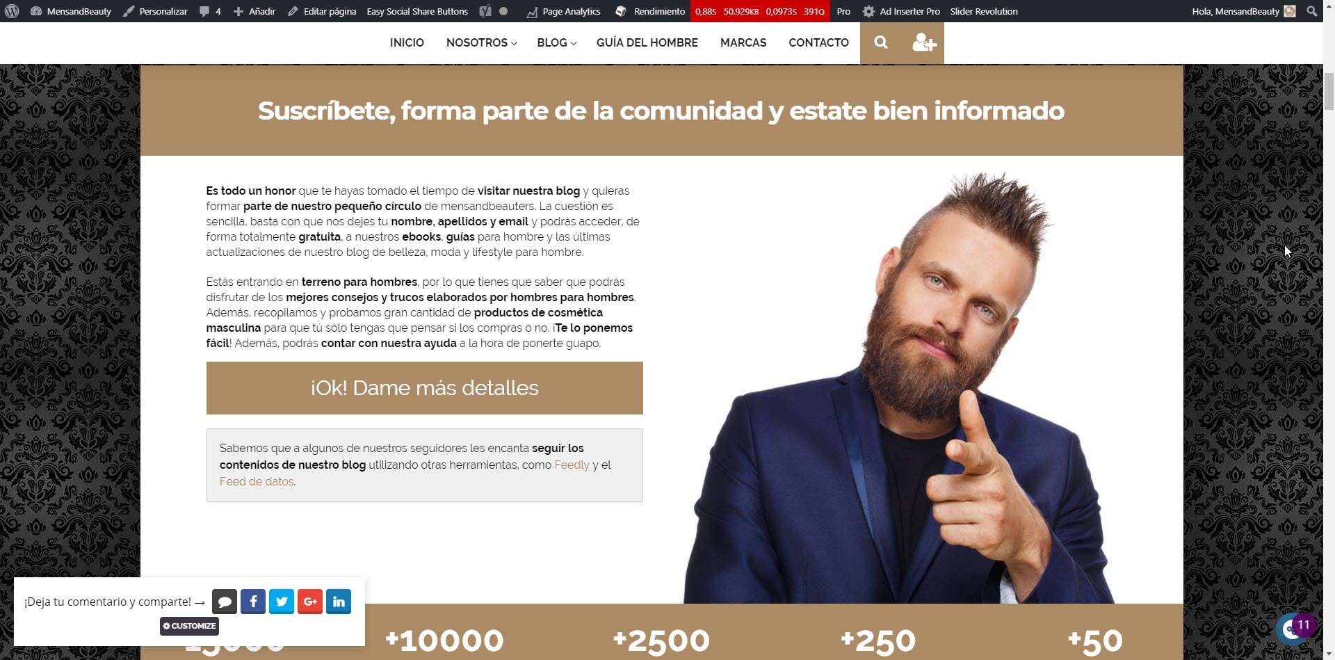 The name of the global block is “Suscripción” and it´s applied in the hompage.