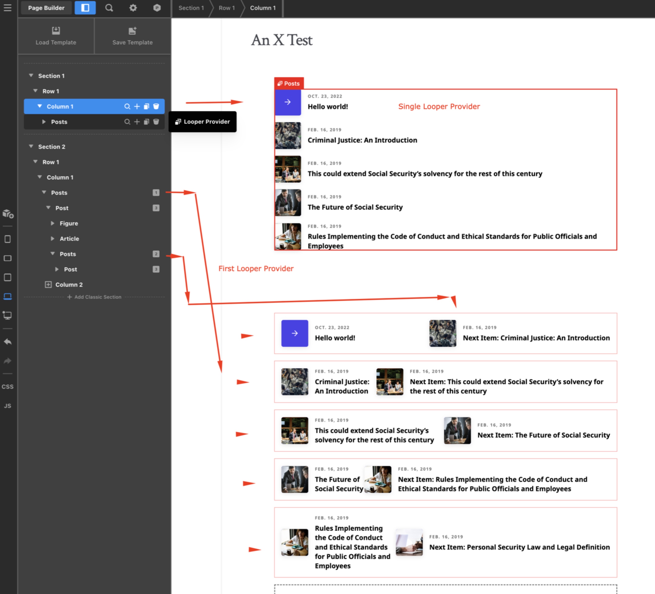 You can accomplish what you have in mind by nesting two Looper Providers. The 2nd Looper Provider will have to display only 1 items and have an offset of “{{dc:looper:index}}” .