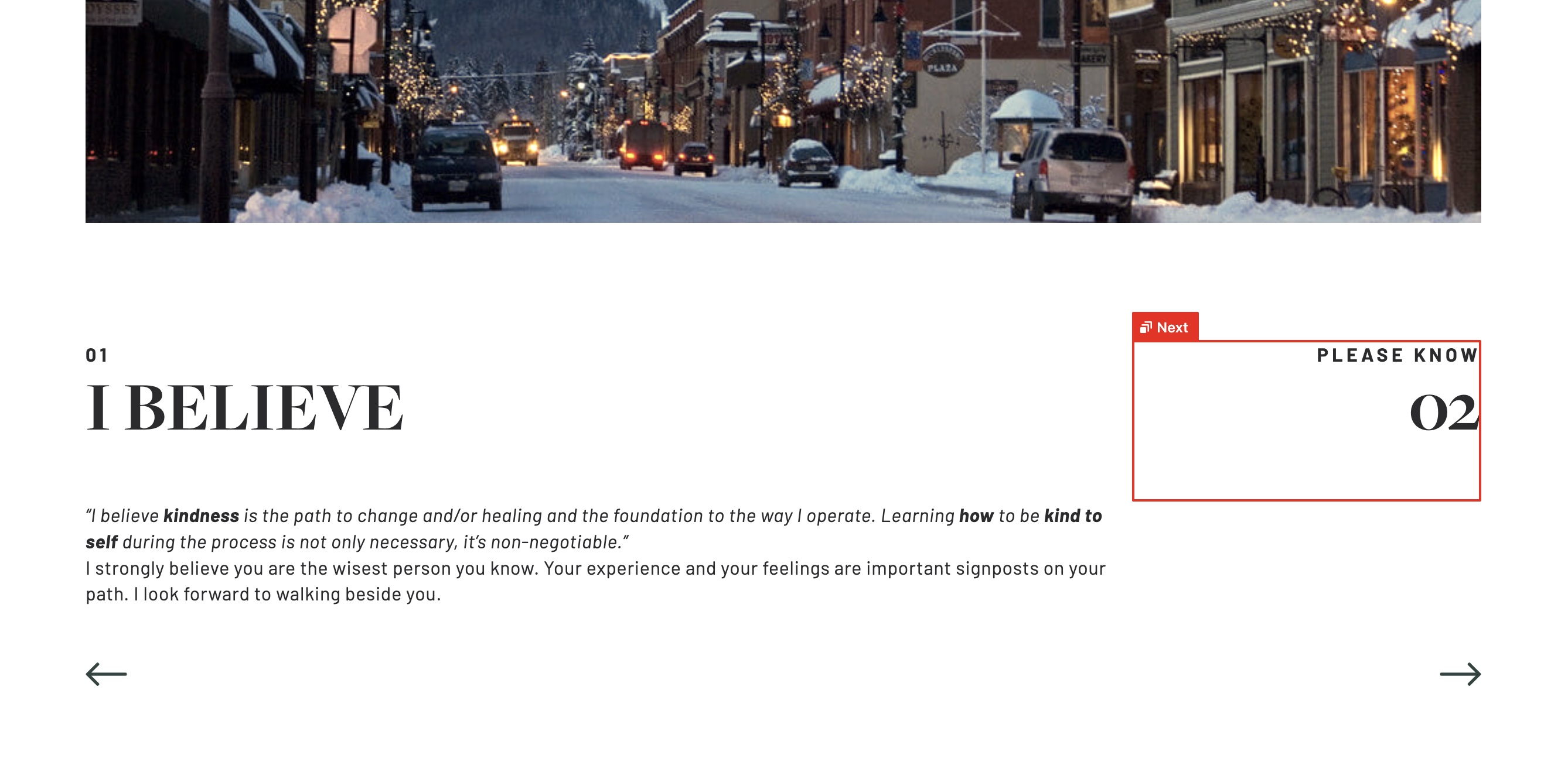 I have an ACF repeater field with some sub-fields that I’m using to build a full height sections. I’ve created a button at the bottom of the screen that users will click to scroll to the next section. One of the repeater subfields is called “Section Title” and I’ve set the section IDs to be the looper index number. I’m wanting the text on the button to be “Next: Section Title of next item” and the link to link to the next item looper index number.