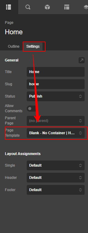 To set the default template, to go your page settings in the builder and locate the page template section.