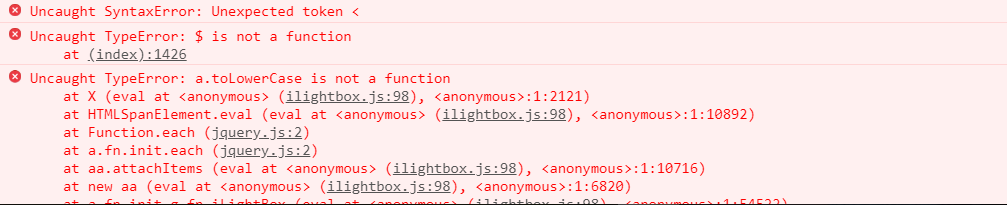 Please backup and remove your custom scripts from the JS section of your page builder and check the site again. Please note that there’s no need to include <script></script> tags in the JS section as they are included by default. One more thing I’ve noticed is that you’re trying to include jQuery library in the theme, it’s not needed as it is already included by default.