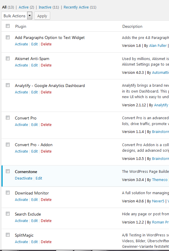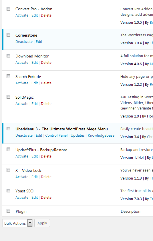 Now I have deactivated every single plugin except the cornerstone and ubermenu