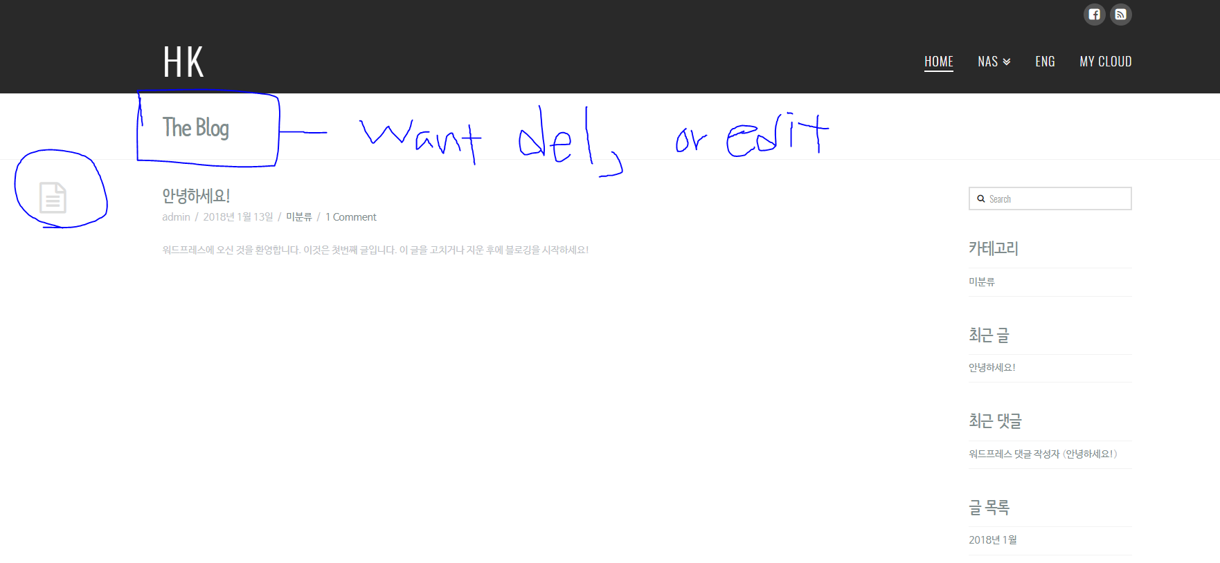 And I want to change or delete the phrase “The blog”. How do I fix this?