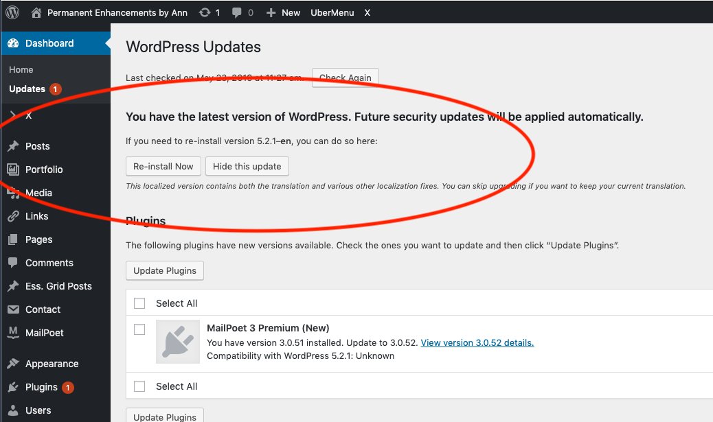 tried reinstalling Wordpress