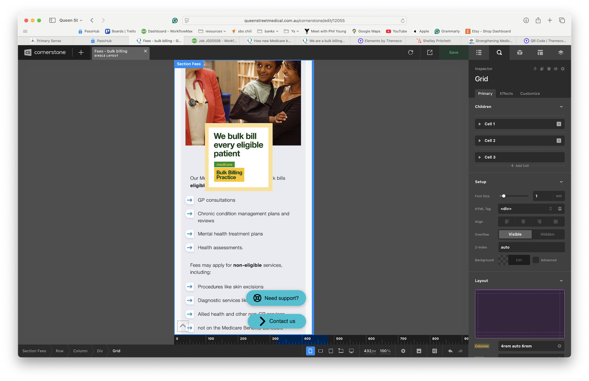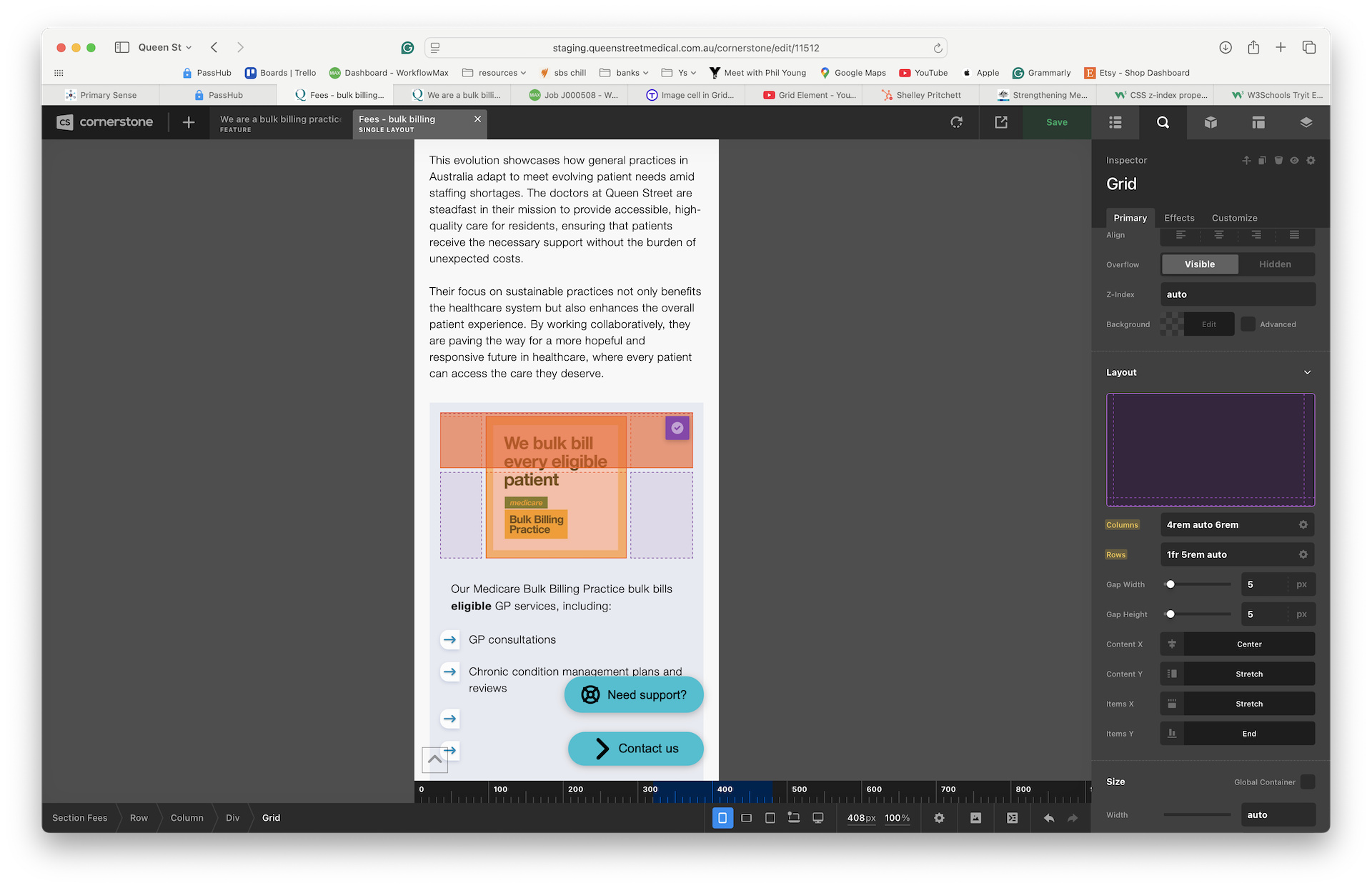 What setting do I use to make sure the cell in the grid doesn’t overlay the text element underneath in this post?