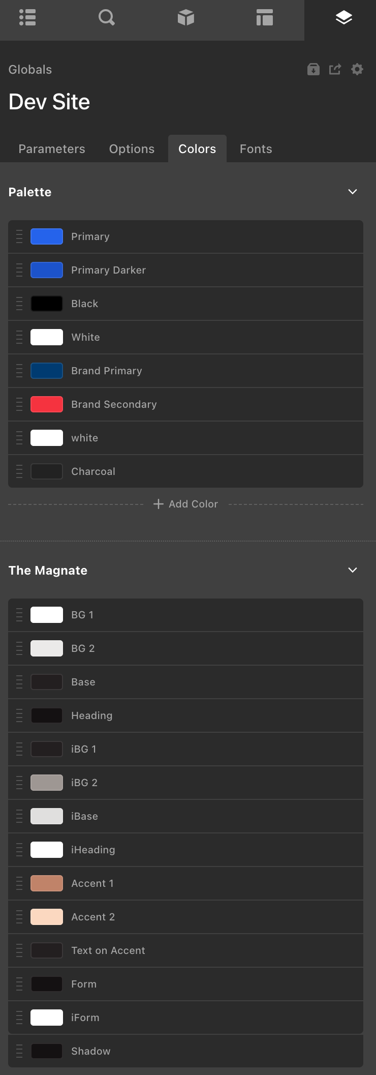 I wanted to look through some of the parameters coded into elements in Magnate. When I did I noted that I now have an extra color palette. There is no way to delete these new colors that were added or delete the named palette.