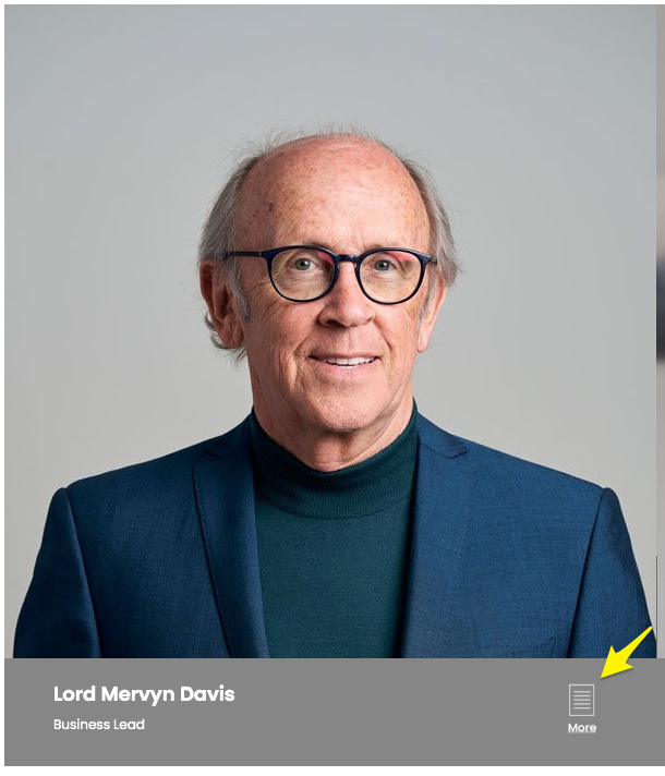 I have set up a modal content panel for the two profiles on the linked page. Currently the button to launch the popup is the little More button indicated in the attached pic.