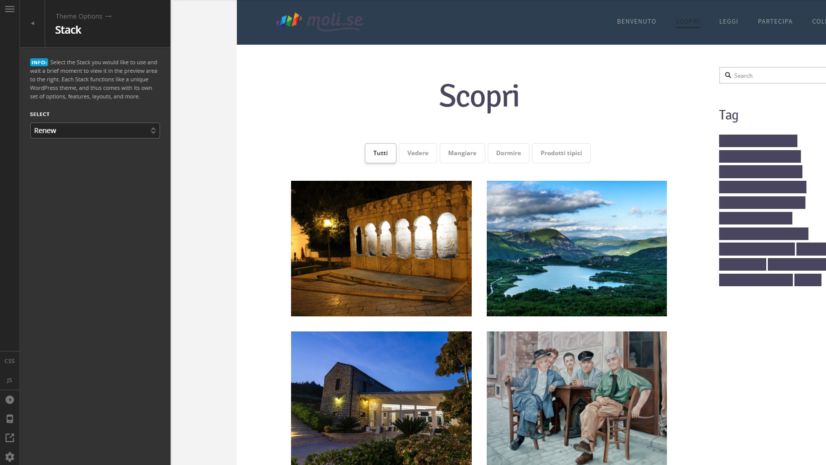Now I have title into the page (https://moli.se/wp4/scopri/ “scopri”), I will love tile whith Landmark Style.