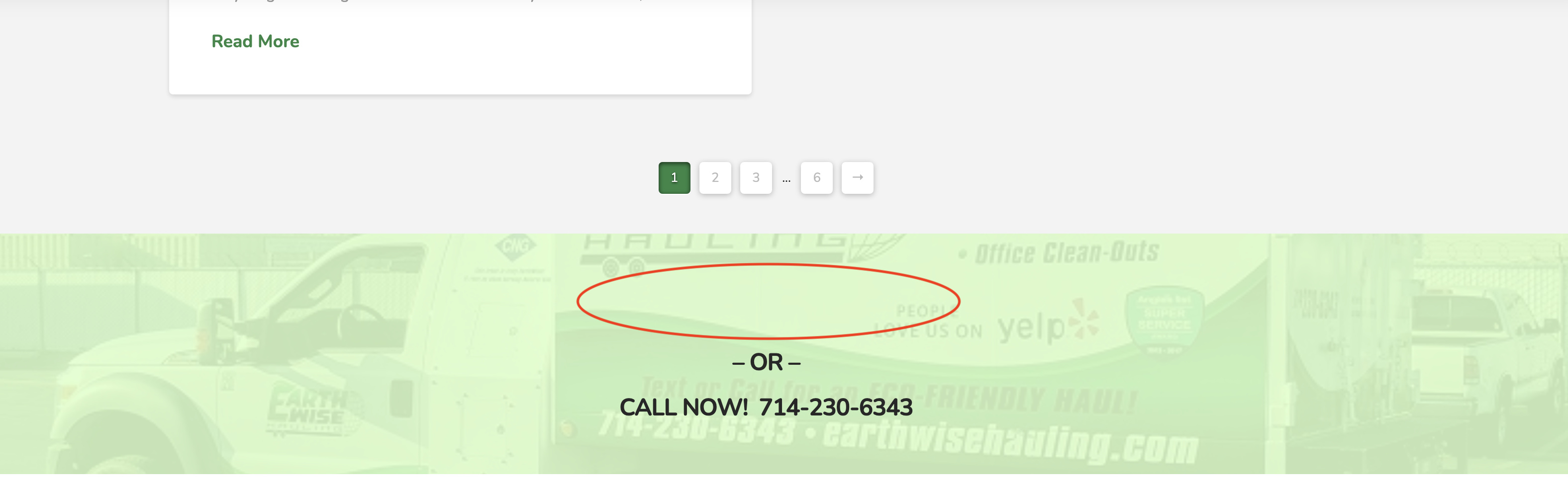 The issue is a button that does not pop up in my light green bar in my footer. See screenshot and red circle indicating where button should be. On the rest of the site my footer is displaying correctly, just not this page.