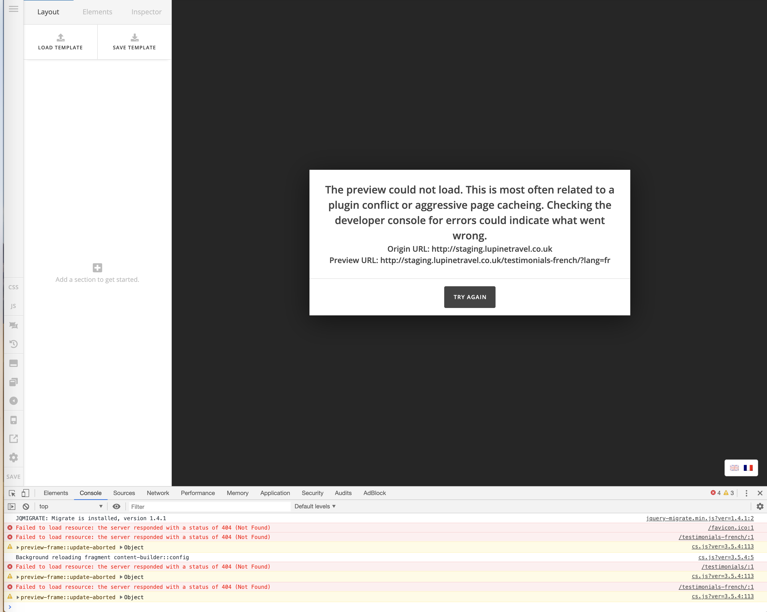 Then about the error from the builder, there is an internal server error. I’m trying to disable the WP Rocket plugin but it just activates back. Could you try disabling all other plugins not related to this issue? Then let’s check the builder again, this error is not related to WPML nor the builder but they get affected.