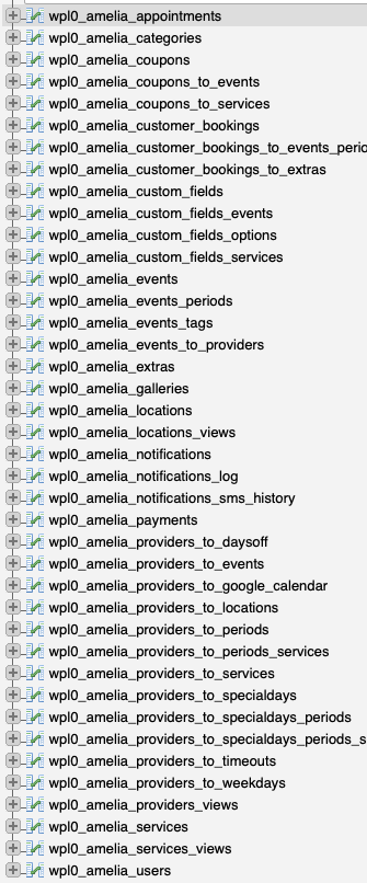 I’ve noticed a huge number of tables in my database for quite a while, but it never really bothered me. Now I’m trying to clean things up and I realise these are from the Amelia plugin. I don’t remember ever installing this plugin, so before I delete these tables I want to check that it’s not bundled with ThemeCo X and that deleting them won’t cause things to go wrong…?