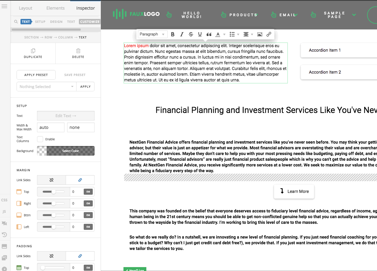 When I place a content block with simple content in one section, and another one in the second, sometimes I cannot switch between them by clicking one and the other respectively.