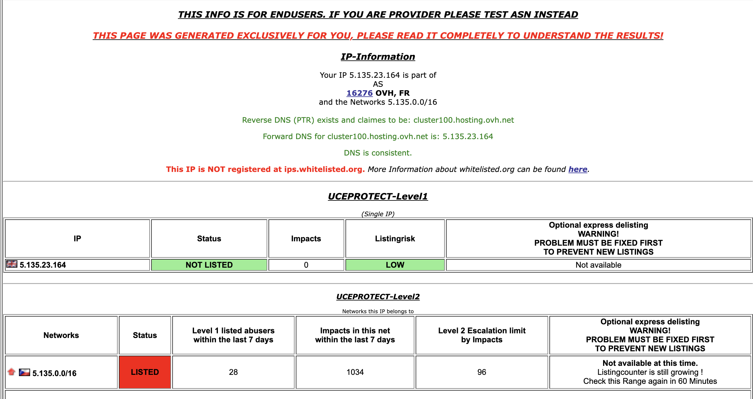 Hi but my direct IP is not listed, i double checked with OVH and UCEPROTECT is listing the entire Subnet and not my Direct IP