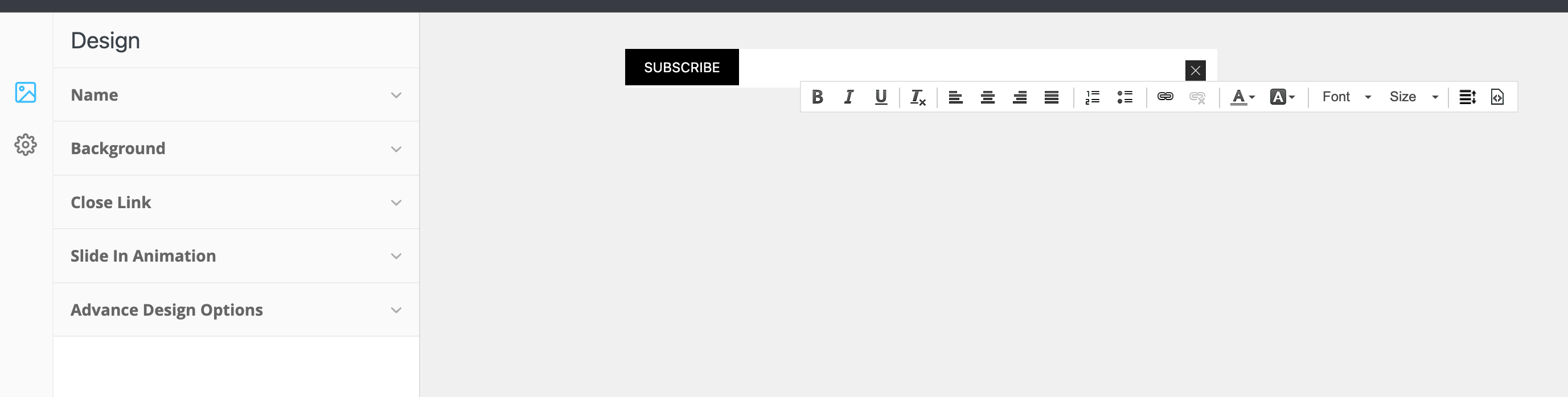 but when i want to edit the slider/text nothing is there. just the close button and a black “subscribe” button.