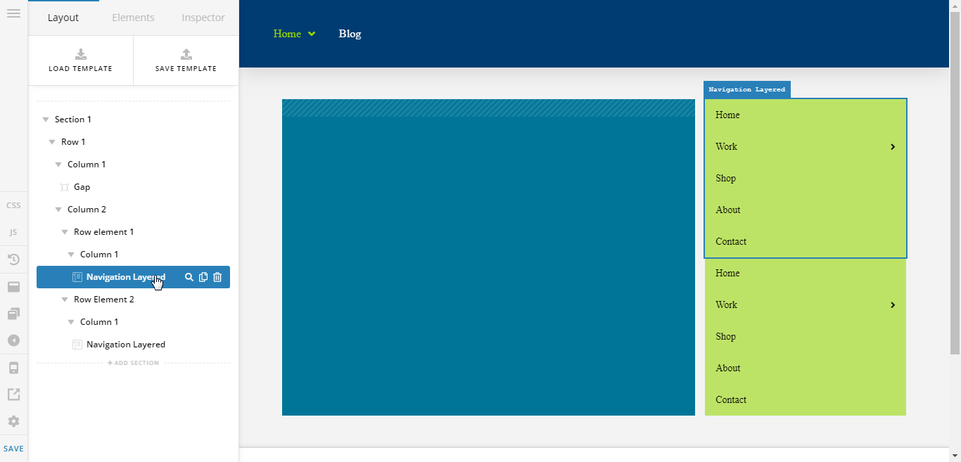 For now, the workaround to that is to have the Navigation layered in a separate nested ROW. That means do not put directly the Navigation layered in the column, place two ROW Element first inside the column, then each of that nested ROW element add your Navigation layered element, so your section structure should look like this: