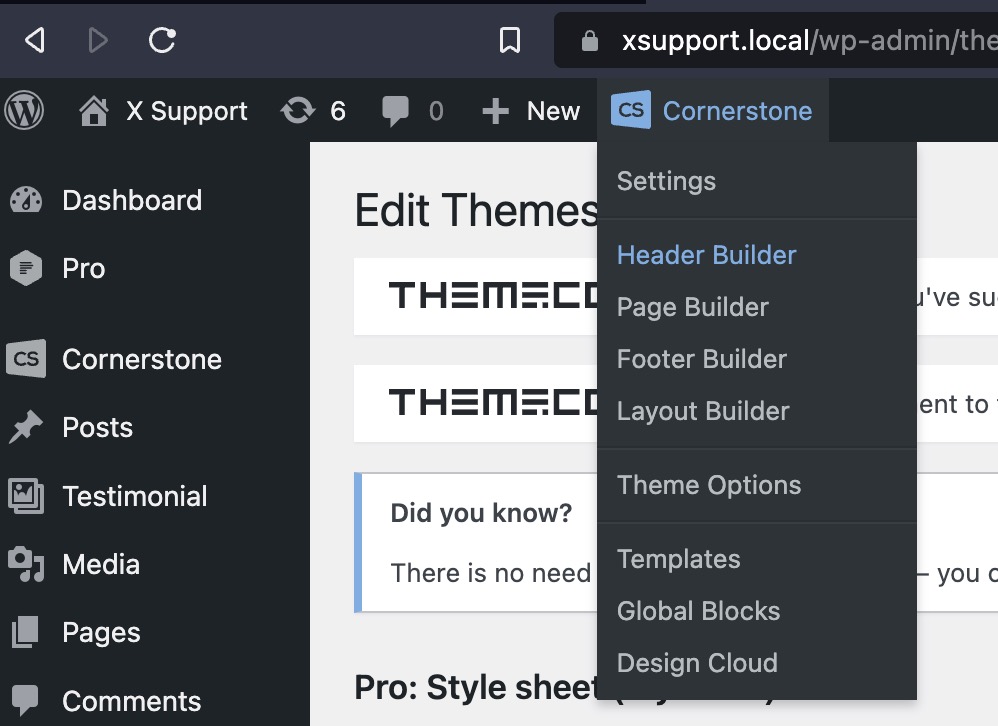 If you want to create a custom header or footer, you will have to go to Cornerstone > Header Builder.