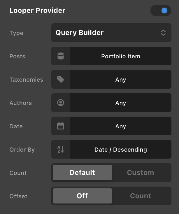 - Enable Looper Provider on a Layout Element (Divs are handy of you don’t want to)