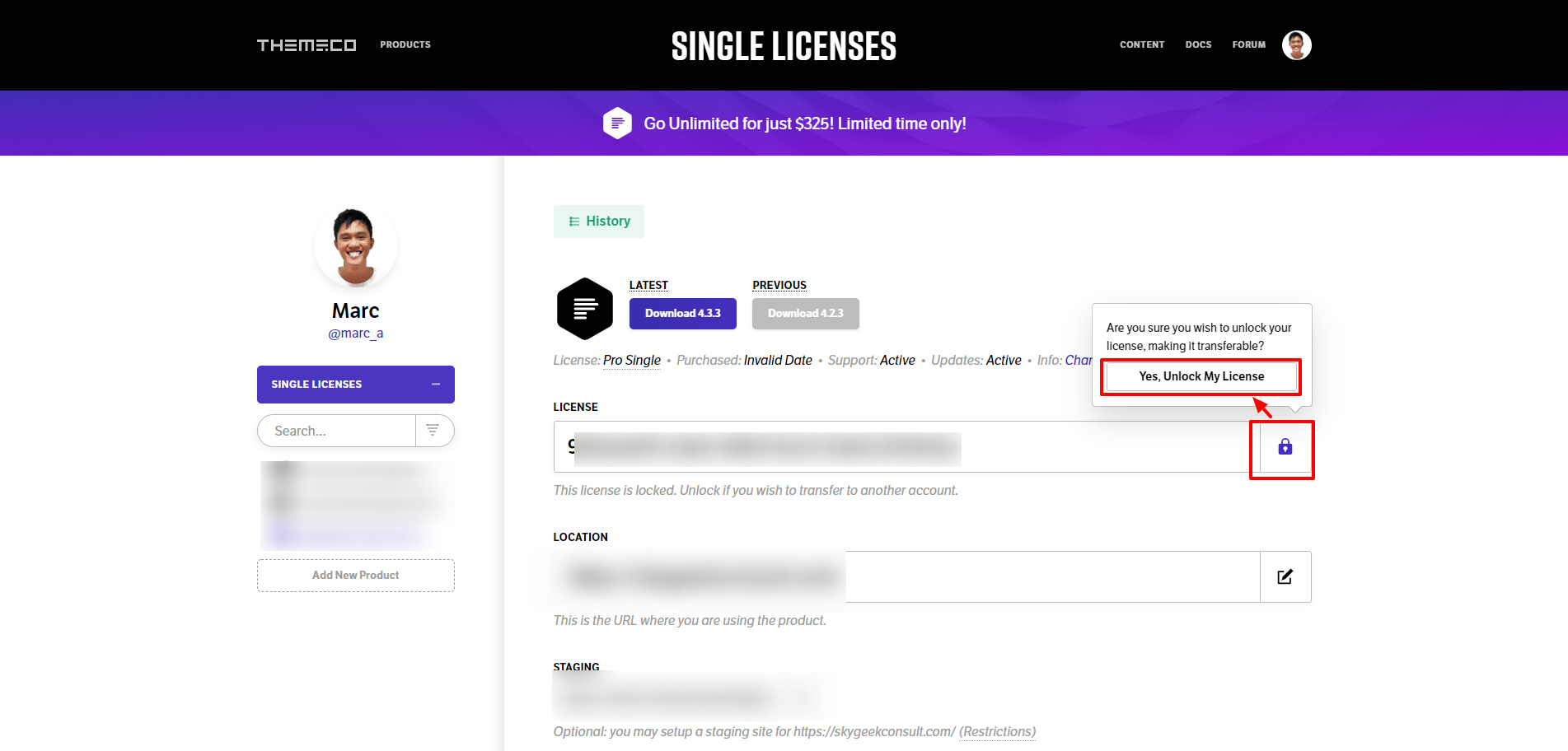 After that, locate your license code and click the Yes, unlock my license.