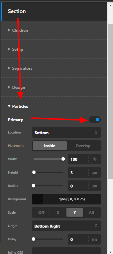 It comes due to the Primary Particle of the Section being set to enable. I would suggest you disable it to get rid of this line.