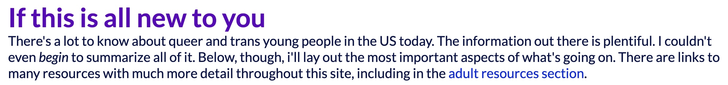The last words, “adult resources section,” are linked to this website page. But if you hover your mouse over the text, you don’t get something to click until the mouse pointer is above the text. I’ve tried in Chrome, Firefox, and Safari, and it’s the same on all of them.