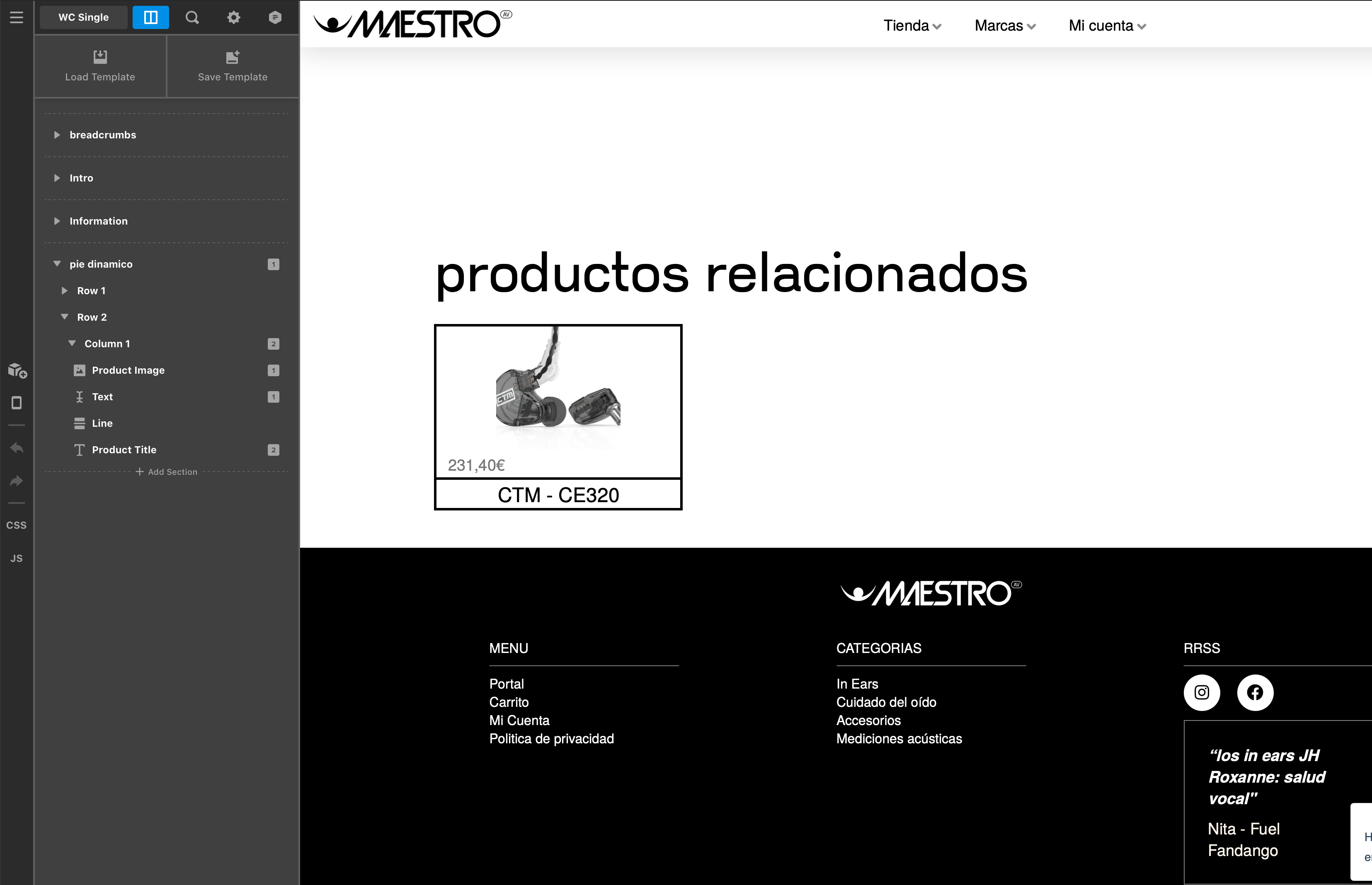 I was able to access your site today. I went ahead and checked your site and the WC single product layout. It seems that you have not yet assigned any related product. I would suggest you assign the related product there to your layout that you have created. Please let us know if it is not working for you.