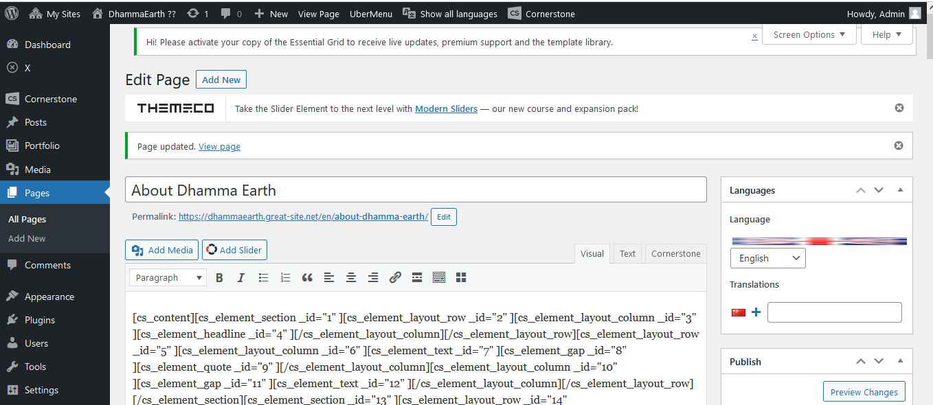 After I activate my cornerstone plugin all my contents are not showing in website. But can be seen in edit page visual and text tab. Tried update button, not working. May I know how to restore back the page content?
