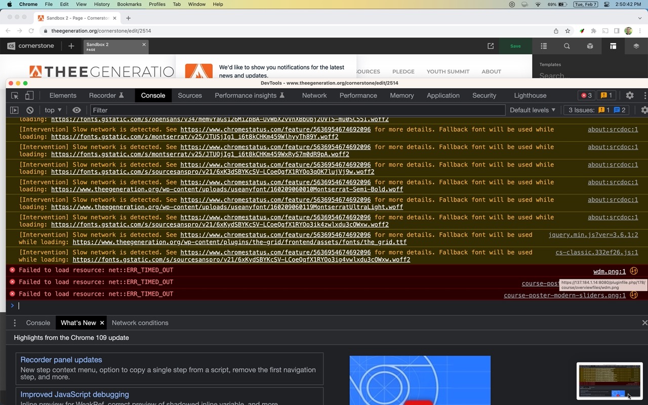 Hey there, in the 6.1.0 release of Pro, the Course Thumbnails in MAX aren’t showing up. Looking at the inspector, I think the images are pointed to your staging IP or something. See screenshows below.