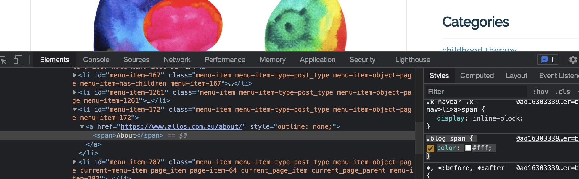 I have an issue with menu colors changing to white and becoming invisible: only when selecting the blog page.