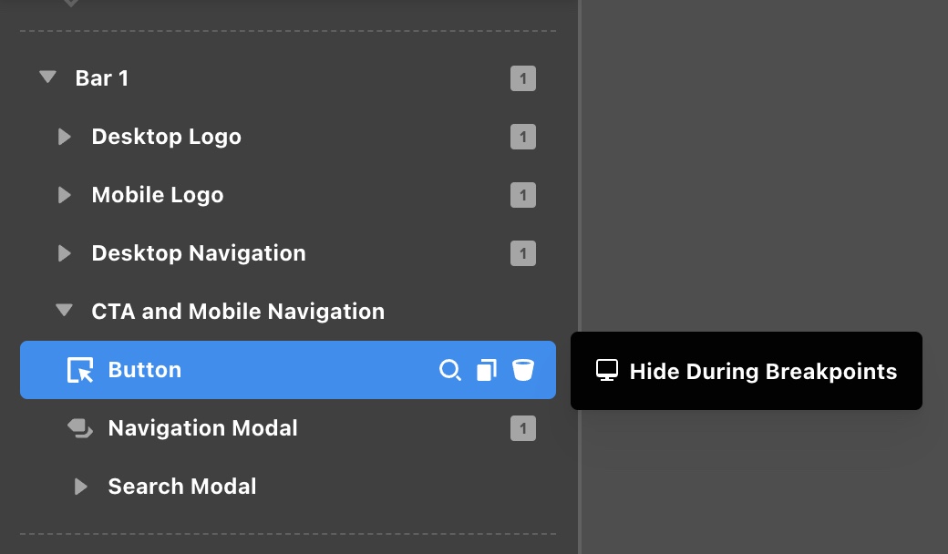 This indicates the Button element is hidden away from all screen sizes except those that are only 480 pixels and below. To get your issue resolve, you can simply hide away the button or if you do not the button, you can simply delete it from your header. And if you want the button to display on the other screen sizes, you just have to enable which screen you want it to be displayed on.