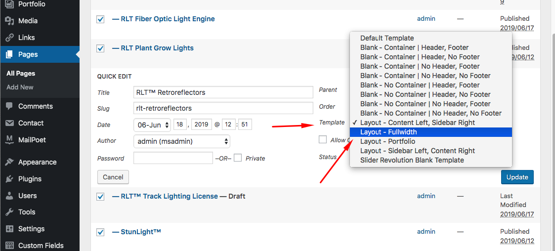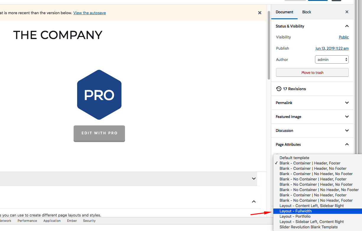 3.) And then change the page template in the Page Attribute from Blank - Container | Header, Footer to Layout - Fullwidth.