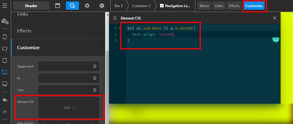 Can you help with centered the menu and sub menu items so that the text sits in center