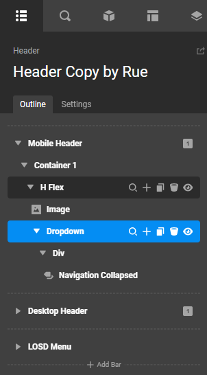 Be advised that the Navigation Inline and Navigation Dropdown are best to use for desktop screens. To have a mobile dropdown menu, we highly recommend to use the Dropdown element along with the Navigation Layered or Navigation Collapsed element.