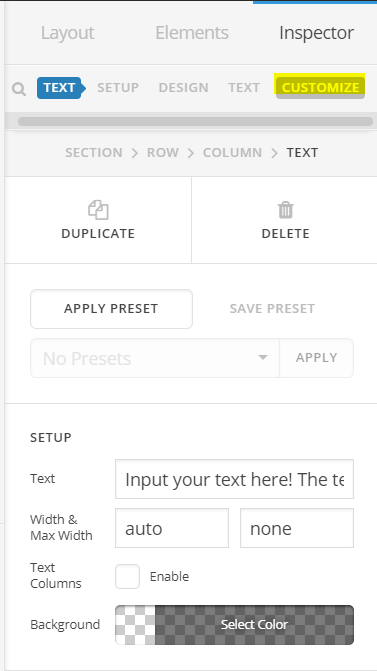 In your text element, click on Customize tab in the topbar (see screenshot)